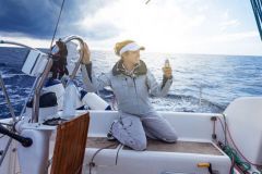 Le plan de voilure est évolutif, passant aisément du catboat à voile unique à la goélette aurique avec grand génois. Il permet au client de faire évoluer sa garde-robe avec son budget et sa confiance en lui et dans le bateau. Selon Marie, il est régulier de voir les clients étoffer l'équipement au fil des années.