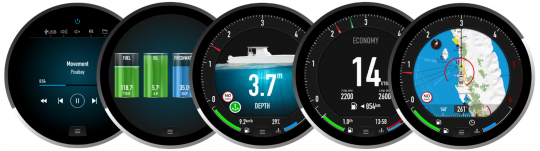 Le LXNAV E360 n'est pas un simple afficheur. Il regroupe en un seul écran les principales informations du bord, en particulier via le protocole NMEA2000 : régime moteur, température, pression, état des batteries, niveaux des réservoirs, données de profondeur, et contrôle audio via les systèmes Fusion.