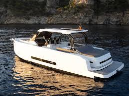 Basé à Barcelone, De Antonio Yachts s'est fait connaître par ses coques au profil tendu, ses ponts affleurants et sa conception singulière qui cache les moteurs hors-bord sous une plateforme arrière.
