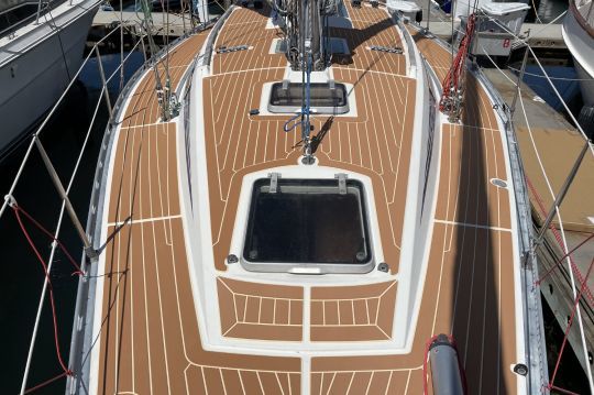 La mousse utilisée répond aux principales contraintes du secteur nautique : résistance à l'eau salée, tenue aux UV, haute tolérance thermique, surface antidérapante y compris humide. Elle est non poreuse et certifiée sans formaldéhyde ni CFC, ce qui facilite son acceptation en environnement normé (marchés publics, chantier naval ISO, refits réglementés). La plage thermique annoncée (-20 °C à +80 °C) permet un usage sans précaution particulière sous nos latitudes, même en plein été.