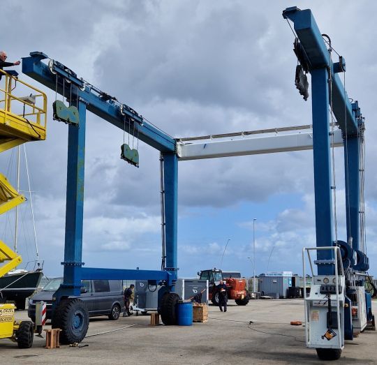 Le nouvel appareil, un Marine Travelift, haut de 7,6 mètres et large de 8,65 mètres, est conçu pour faciliter les manœuvres, évitant au plaisancier de voir démâter leur bateau pour le gruter. Les techniciens peuvent le piloter depuis une cabine ou à distance grâce à une télécommande. Treuils, réglages et sangles sont désormais entièrement hydrauliques, simplifiant le travail au quotidien.