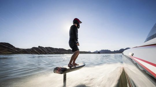 Brunswick expose également le Flite Race eFoil, développé avec Flite et Mercury Racing. Cette planche à foil électrique, pensée pour la performance, fait partie des démonstrations dynamiques proposées au public. Elle s'inscrit dans une gamme plus large de micro-mobilités marines que Brunswick entend structurer autour de sa marque Flite.