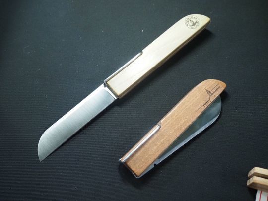Les manches sont taillés dans des essences locales ou issues de chutes de bois vouées à la destruction, comme le pommier, le poirier, l'if ou l'olivier récupéré après les tempêtes.