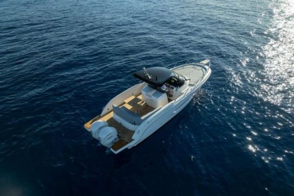 Ce modèle reçoit trois blocs Yamaha XTO de 450 chevaux. Ce type de configuration vise des vitesses élevées en navigation côtière, avec une puissance disponible importante et une répartition symétrique sur le tableau arrière.